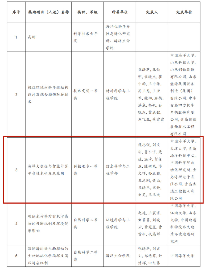 笔趣阁 魏志强教授主持完成的成果“海洋大数据与智能计算平台技术研发及应用”荣获省科技进步一等奖,并作为获奖项目代表应邀赴济南参会。