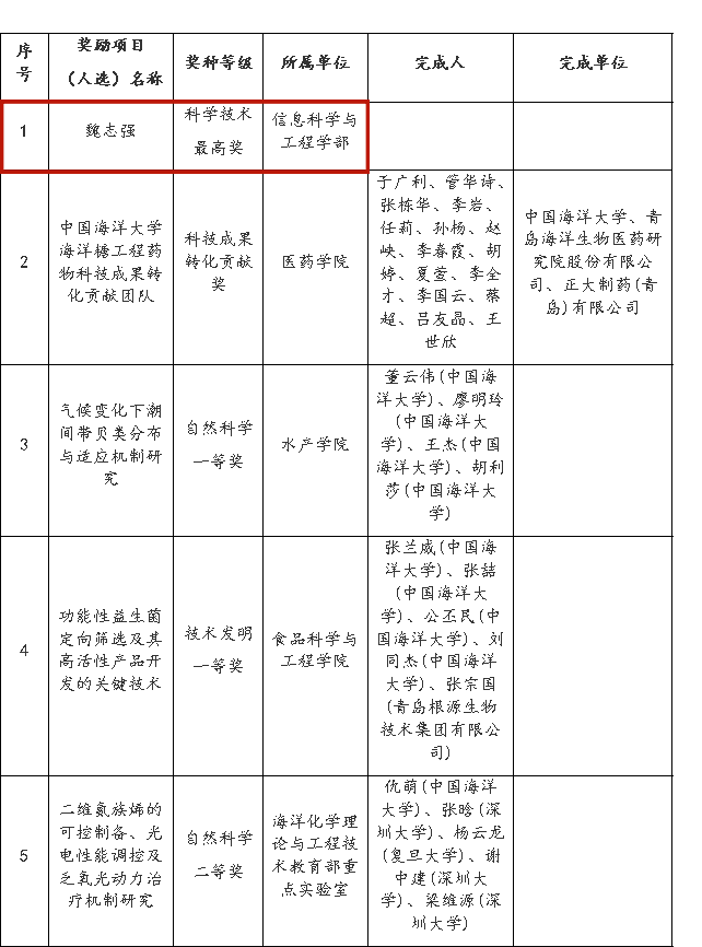 魏志强教授长期致力于领域智能计算与智能信息系统研究,是学校继文圣常、麦康森、吴立新、李华军、崔洪芝教授之后,学校第六位获此殊荣的科学家。