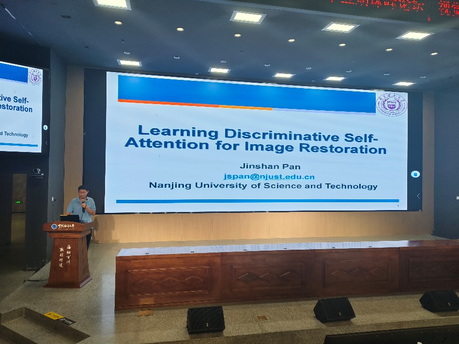 潘金山教授作了题为“面向图像视频复原的判别性自注意力机制方法”的报告。