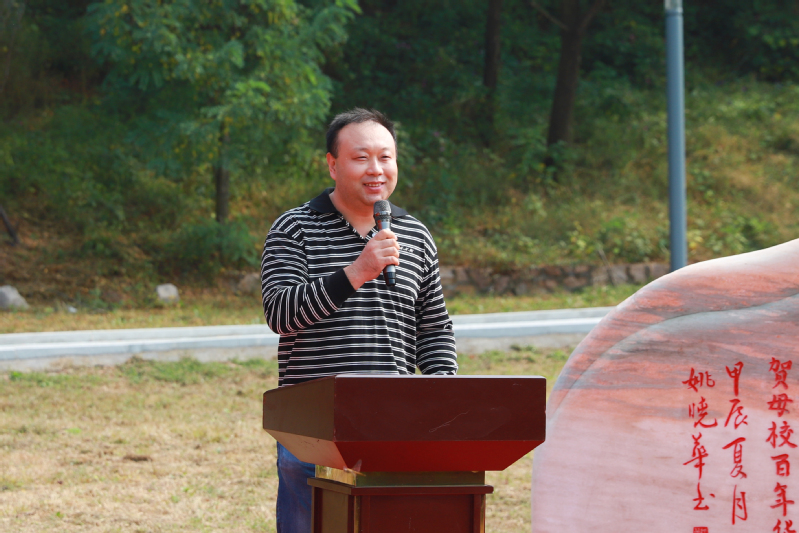 王锟校友代表捐赠班级发言。他表示在母校百年华诞之际,希望以石寄情,感恩母校的培养,祝福母校在新的百年征程中再创辉煌。