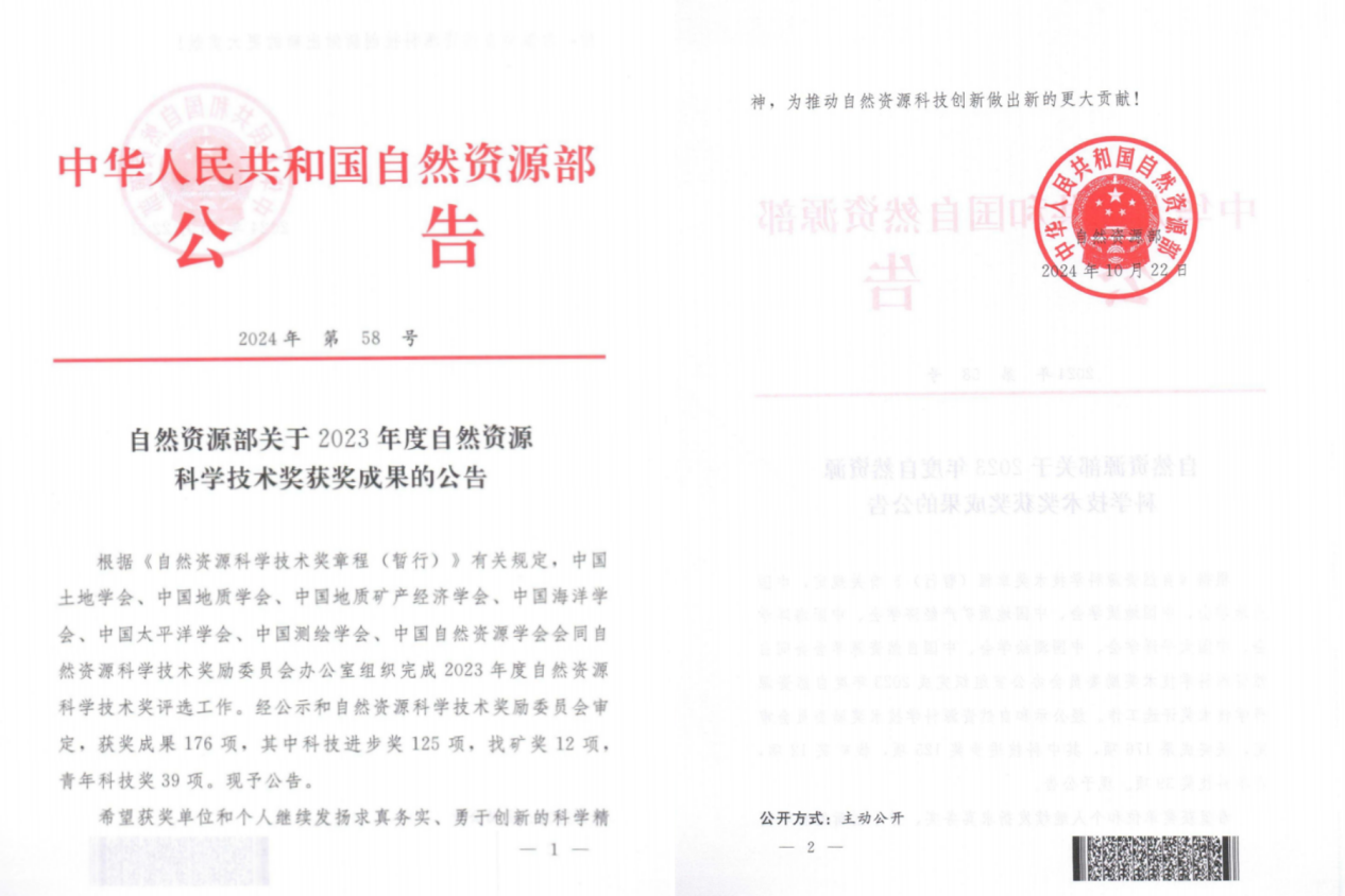 据悉,自然资源科学技术奖由中国土地学会、中国地质学会、中国地质矿产经济学会、中国海洋学会、中国太平洋学会、中国测绘学会、中国自然资源学会于2022年联合设立,旨在奖励在自然资源领域科技创新中做出重要贡献的集体和个人。2023年度自然资源科学技术奖获奖成果共176项,其中科技进步奖125项,找矿奖12项,青年科技奖39项。