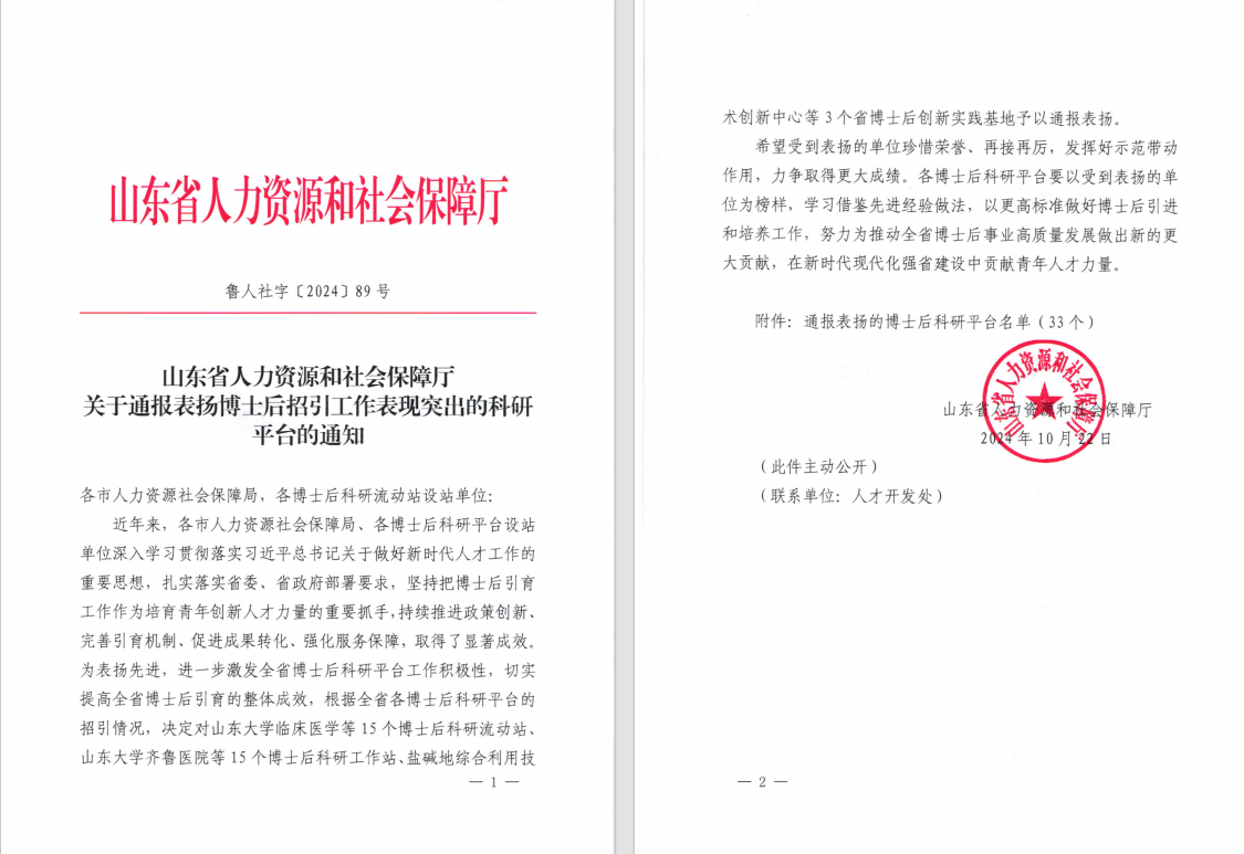近日,山东省人力资源和社会保障厅通报表扬了博士后招引工作表现突出的科研平台,笔趣阁 计算机科学与技术博士后科研流动站获通报表扬。据悉,全省通报表扬的科研博后流动站共33个,笔趣阁 共有3个科研博后流动站荣登表扬名单。
