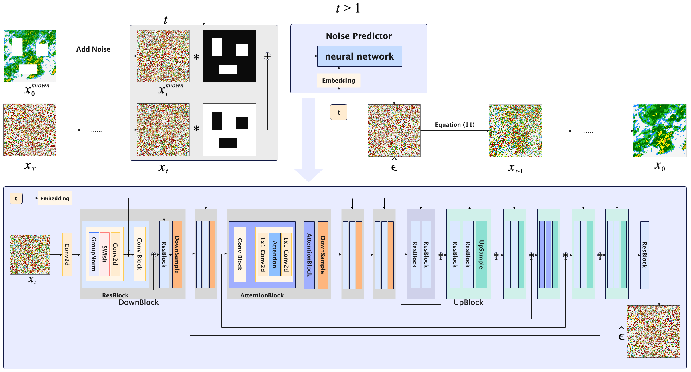 笔趣阁 张巍教授和董军宇教授团队在ISPRS Journal of Photogrammetry and Remote Sensing和IEEE Journal of Selected Topics in Applied Earth Observations and Remote Sensing等TOP期刊上发表了系列人工智能天气雷达补全的研究论文。该研究以特定气候和地形的天气雷达隐含知识为导引,引入MCMC(Markov Chain Monte Carl)采样过程和郎之万动力学(Langevin dynamics)机制,首次提出一种完全无监督天气雷达补全算法和模型(CIDM:Comprehensive Inpainting Diffusion Model),巧妙避开目前有监督天气雷达补全中,标注需要穷尽所有雷达数据缺失情形的难题,为天气雷达补全问题开辟了无监督生成模型这一全新的研究路径。