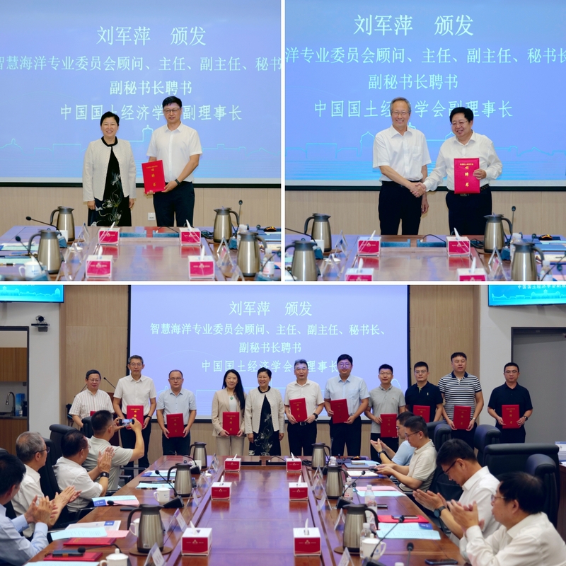 随后,刘军萍为智慧海洋专委会主任、副主任、秘书长颁发聘书。
