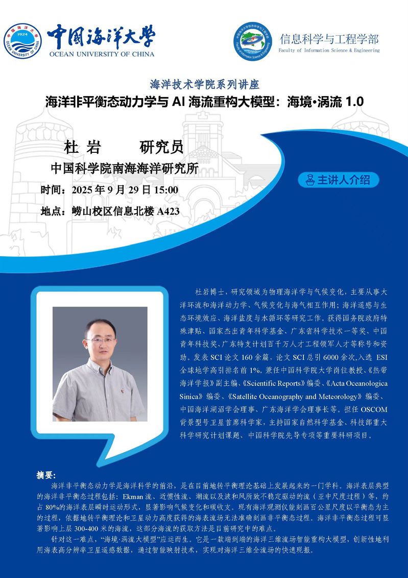 学术报告:海洋非平衡态动力学与AI海流重构大模型:海境·涡流1.0
