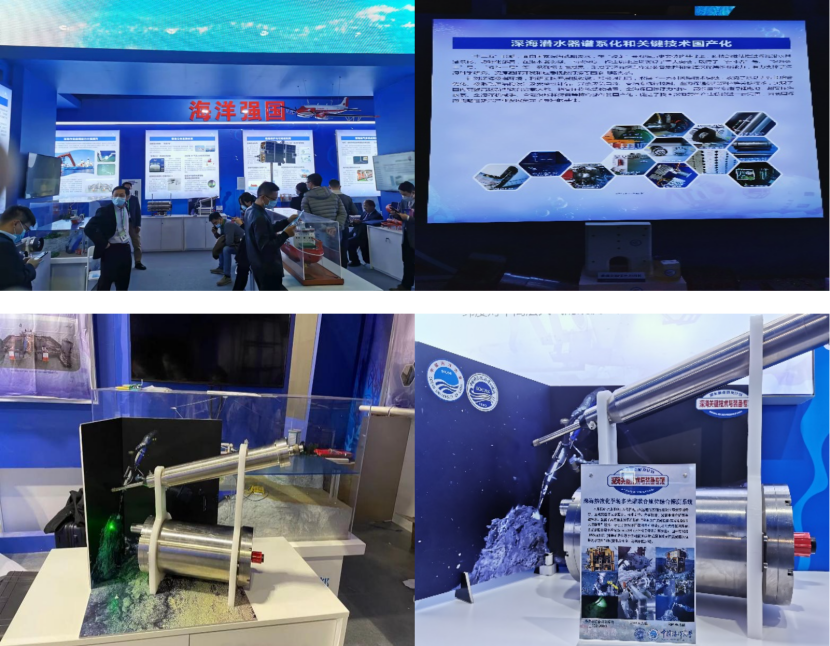 The "Deep-Sea Hydrothermal Chemical Field Multi-Spectral Joint In-situ Comprehensive Detection System" developed by Professor Zheng Rong'er's team from the College of Physics and Optoelectronic Engineering in the Faculty of Information Science and Engineering was invited to participate in the National "Thirteenth Five-Year Plan" Science and Technology Innovation Achievement Exhibition. The related exhibits were displayed at the "Marine Power" theme site in the Social Development Exhibition Area of the Beijing Exhibition Hall from October 21st to October 27th. The "Deep-Sea Hydrothermal Chemical Field Multi-Spectral Joint In-situ Comprehensive Detection System" focuses on the basic geochemical observation needs of hydrothermal vents and surrounding near-seabed areas, and has made key breakthroughs in multi-spectral joint, accurate positioning, optical probes, spectral quantitative analysis, and other technologies. They have developed the "Deep-Sea In-Situ Laser Raman-Fluorescence-LIBS Multi-Spectral Joint Use" technology with independent intellectual property rights; and developed a series of deep-sea spectral detection systems for different detection targets: Cmoss-3H multi-spectral joint detection system (water chemical element profile measurement), solid target deep-sea LIBSea system (in-situ measurement of seabed mineral resources), and probe-type deep-sea laser Raman spectroscopy in-situ detection system RiP-Hv (in-situ detection of fluid from deep-sea hydrothermal vents).
