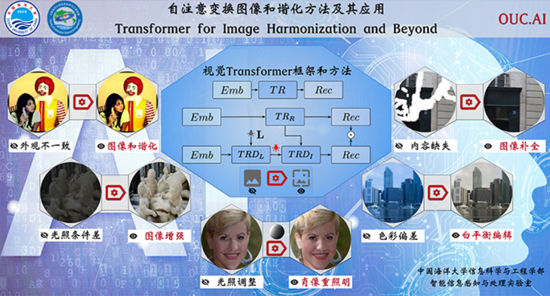 On September 15th, the top international journal on artificial intelligence, TPAMI, reported online on the above-mentioned achievements with the theme "Transformer for Image Harmonization and Beyond". The research was jointly completed by Guo Zonghui, a PhD student from the School of Information Science and Engineering (first author), Senior Experimentalist Gu Zhaorui, and Professors Zheng Bing, Dong Junyu, and Zheng Haiyong (corresponding author). It is the first time that the school has published an academic paper as the first or corresponding unit in TPAMI.
