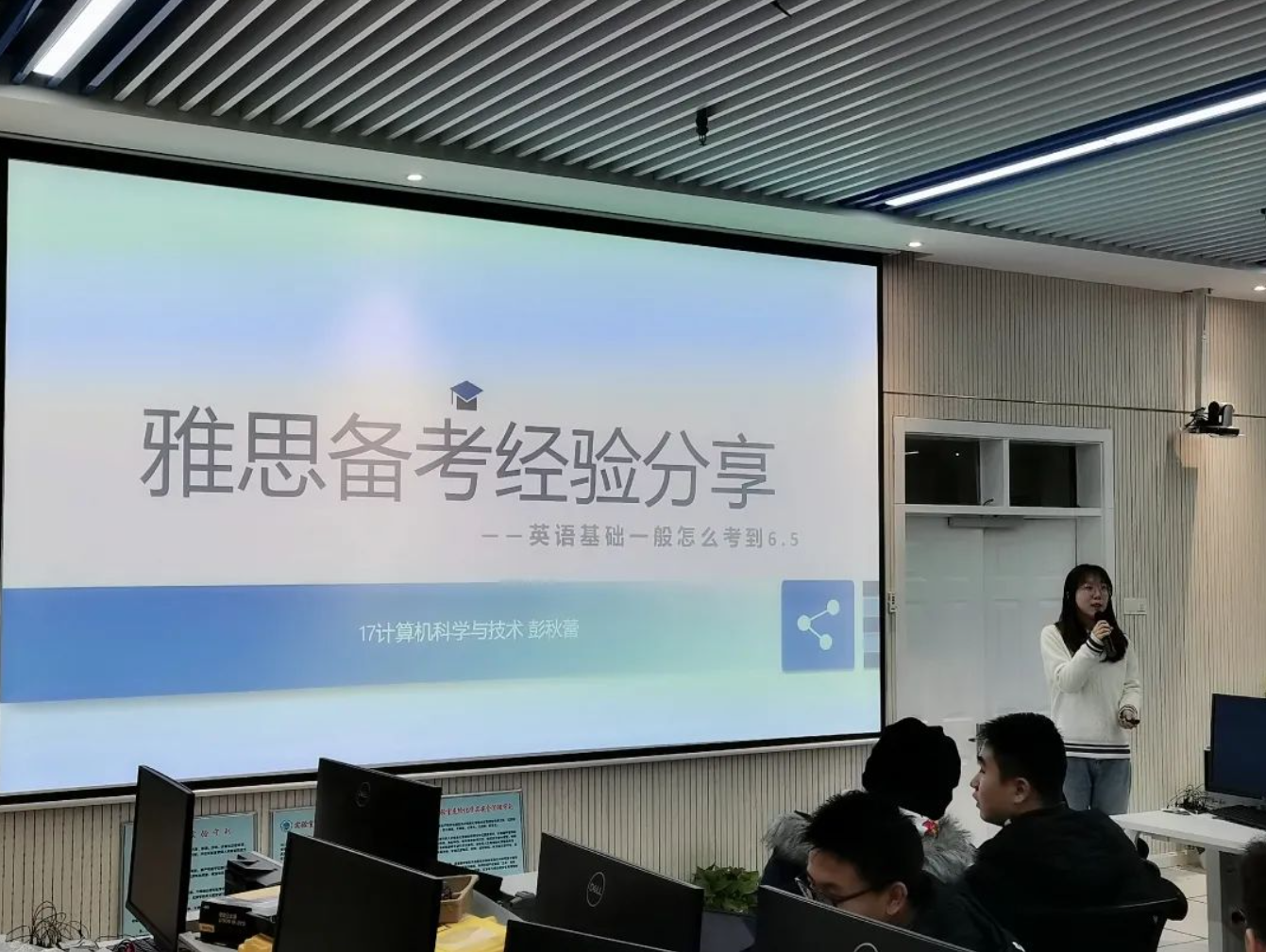 Next, the second student to share was a senior student majoring in computer science, Peng Qiulei. She took the IELTS exam three times, and although her final score was not high at 6.5, her spirit of perseverance and never giving up is worth learning from. Peng has received an admission offer from the Hong Kong University of Science and Technology and will soon be pursuing postgraduate studies in Hong Kong.
