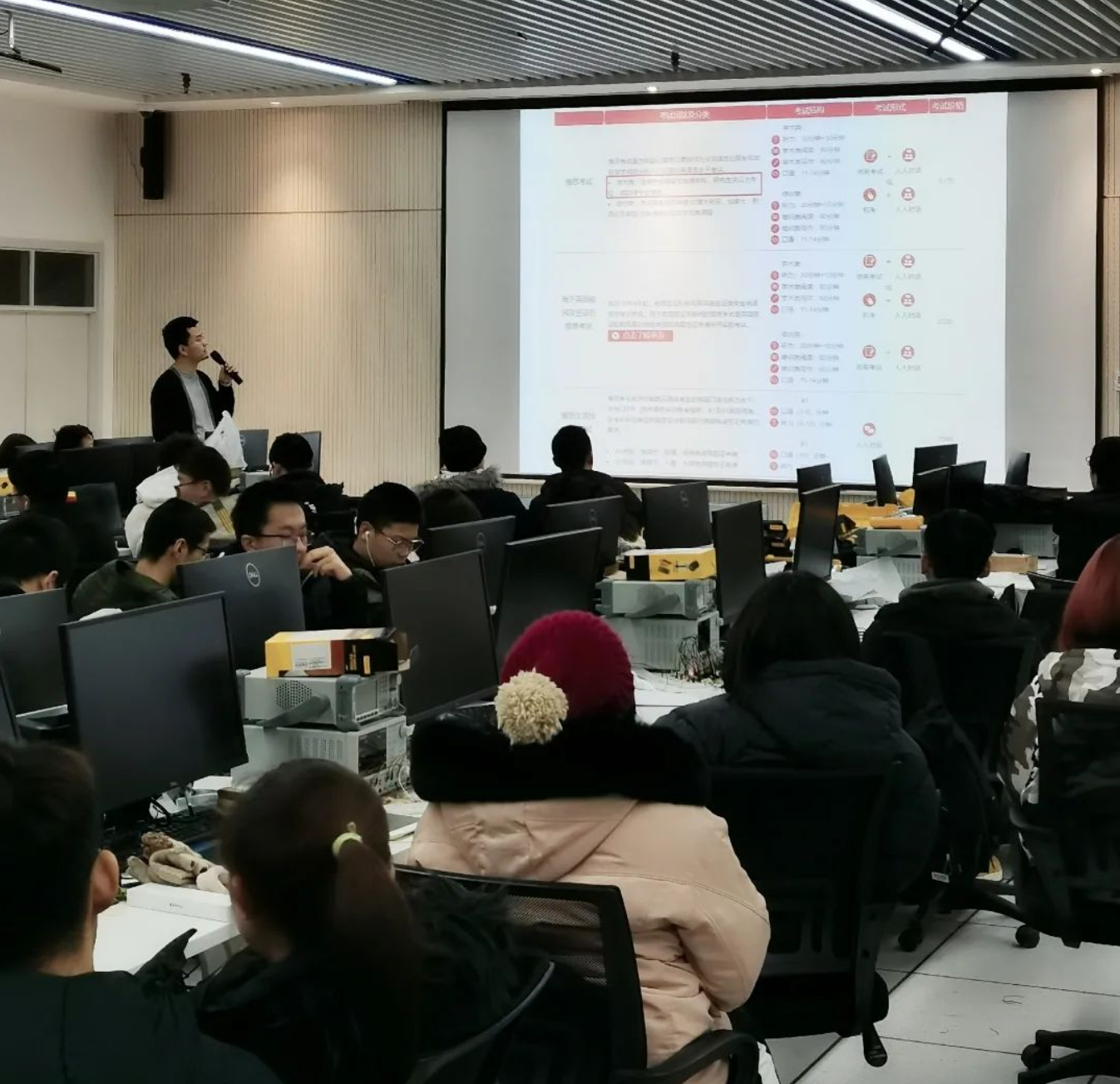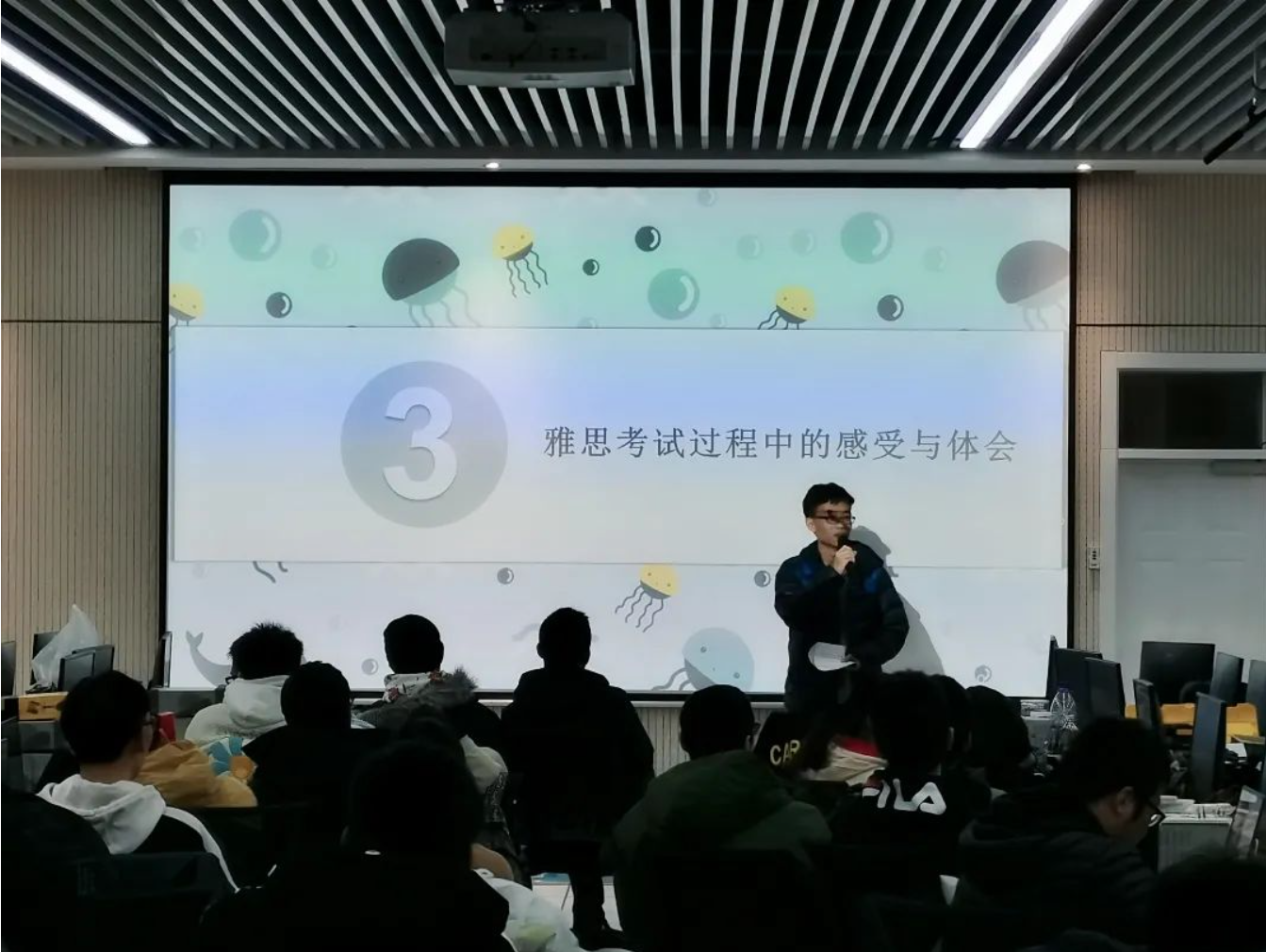On the evening of December 30th at 7:30, the 220 new laboratory in the Network Center was crowded with people as our IELTS experience sharing session began on time. Firstly, Mr. Lu Xiang from the Haida-Heriot-Watt Project Department briefly introduced the basic information of the IELTS test. He provided detailed explanations regarding the registration process, availability of exam seats, and examination venues. Next, he analyzed the similarities and differences among several different types of IELTS tests, including their fees, subjects, and target audiences. Lastly, Mr. Lu shared many practical IELTS preparation resources with the students, including books, videos, apps, and WeChat public accounts, which were all very informative.