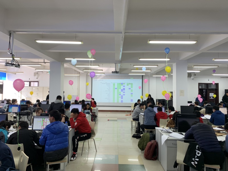 该项比赛分为热身赛和正式赛,其中正式赛持续4 个小时,每支队伍使用一台电脑,当成功通过一道题后,将会得到一个对应颜色的气球。比赛开始后赛况一直十分激烈,排名频繁更替,榜单前列既有15 级老将的名字,也不乏18 级年轻的身影。其中来自 17 级的队伍“傅歌庄颜不陪我玩,本谢自己带新拿创新学分” 前期排名遥遥领先,虽然在中途被反超,但是他们稳住局势,成功追回排名,最终以绝对的优势成功夺冠。 通过此次比赛,我们提高了同学们的编程能力与创新能力,在学校营造了一种积极向上的竞赛气氛与良好的团队意识,为科技创新月的开展打好了扎实的基础。