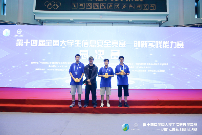 我校通过校内赛选拔派出由Blue-Whale信息安全研究团队2018级通信工程专业本科生王雨潇、2020级计算机科学与技术专业硕士研究生施睿、2019级计算机科学与技术专业本科生孙英力和何相龙4名队员组成的战队,2021年5月15日以分区第一名的成绩晋级分区赛,2021年6月18日~19日在合肥举办的华东北赛区分区赛中以第3名的成绩晋级总决赛,2021年7月17日~18日在哈尔滨举办的全国总决赛上,最终以总决赛80支队伍中排名第5的成绩荣获一等奖,曲海鹏老师获优秀指导教师奖。