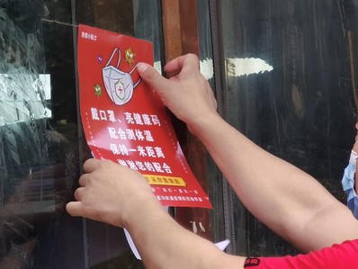 服务团成员首先来到发祥巷社区总支部委员会,跟随居委会成员对辖区商户宣传新的防疫规定,张贴防疫须知。服务团了解到居委会虽然作为防控体系中最基层的一环,却承担着十分重要的职责,日常的工作量也非常庞大。他们的防疫工作在日常状态和紧急状态之间切换迅速,社区工作人员经常会出现半夜接到紧急电话,需要连夜到岗的情况。居委会书记的电话更是要保持24小时开机,在紧急待命的状态下也会出现几个昼夜连轴转的高强度工作。