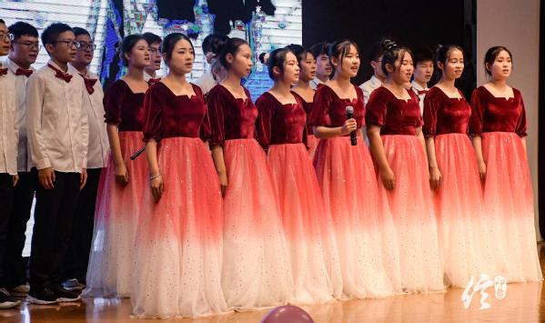 “红日升在东方,其大道满霞光”,一砖一瓦浸满岁月的红墙,一草一木经历着悲喜沧桑,光电信息科学与工程班用一首《万疆》歌颂祖国,深切表达“我何其幸,生于你怀”。
