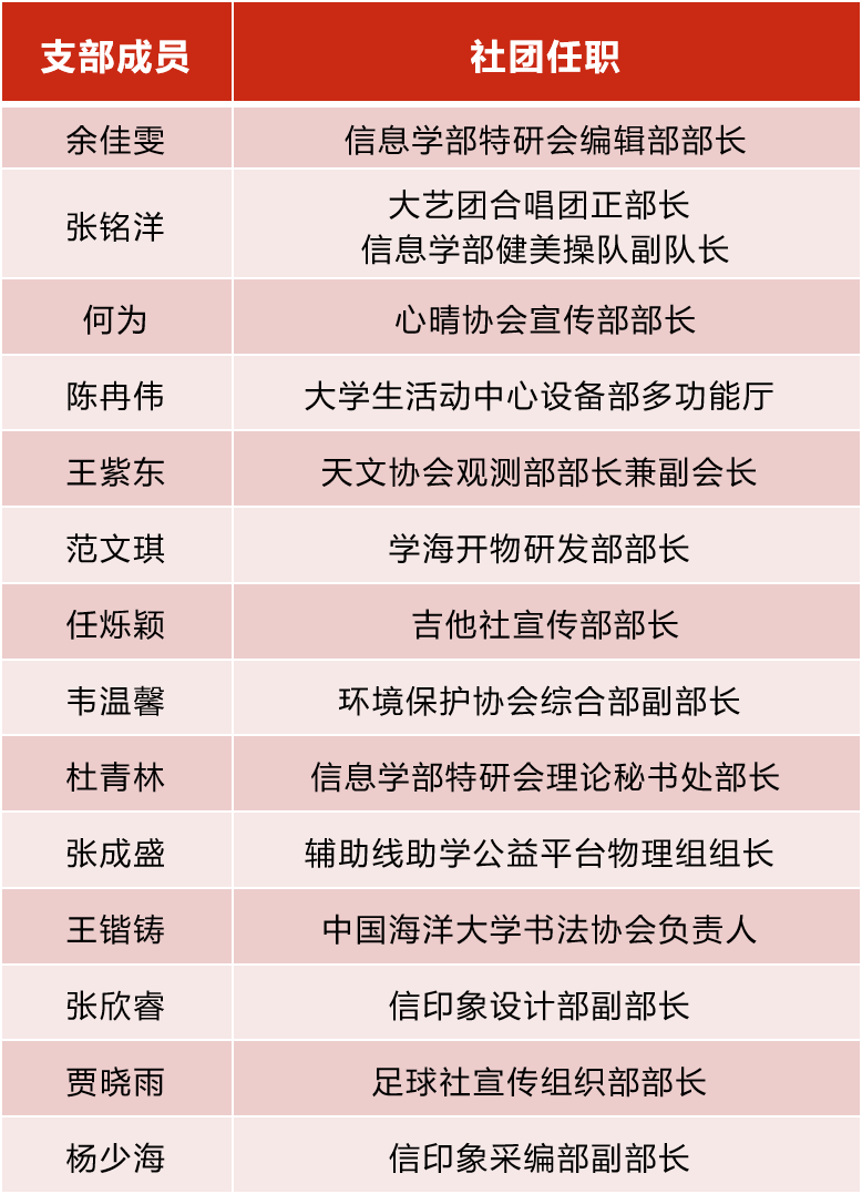 支部成员还积极参与“千里传音”、“希望小屋”等公益活动、学生工作和国防宣传中。一人获全国国防教育微视频征集评选活动二等奖,14人在社团任职,服务广大同学,发挥青年力量。此外,支部成员还活跃在百川计划、三下乡等社会实践中,其中一人所在团队获评2021年全省大中专学生志愿者暑期“三下乡”社会实践活动优秀服务队。同时,支部内4人担任朋辈导生,对新生进行帮扶。其它成员也积极帮助新生适应大学生活,如解答疑惑、指导新生辩论赛等,努力做到“薪火相传”。