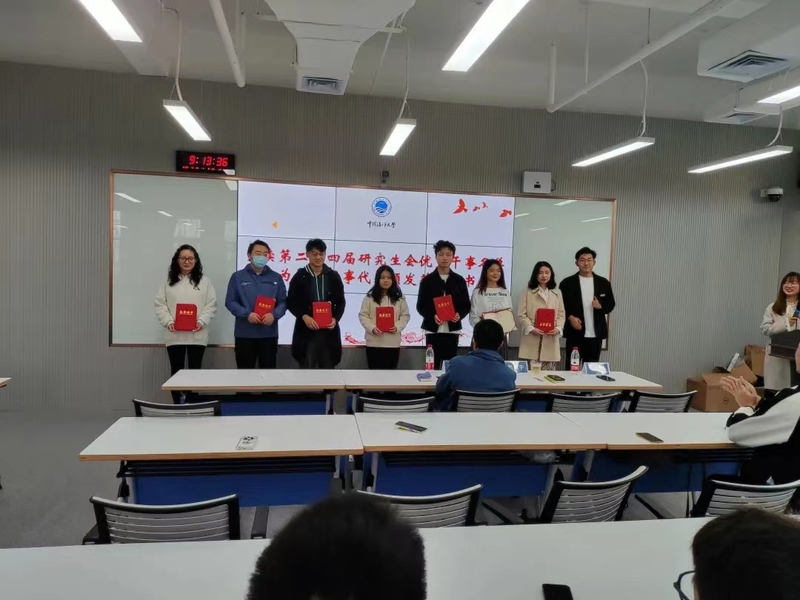 高剑宇宣读了第二十四届研究生会优秀工作者名单和第二十五届研会主席团、部长团以及全体新干事名单,冷震为第二十四届优秀工作者颁发获奖证书。