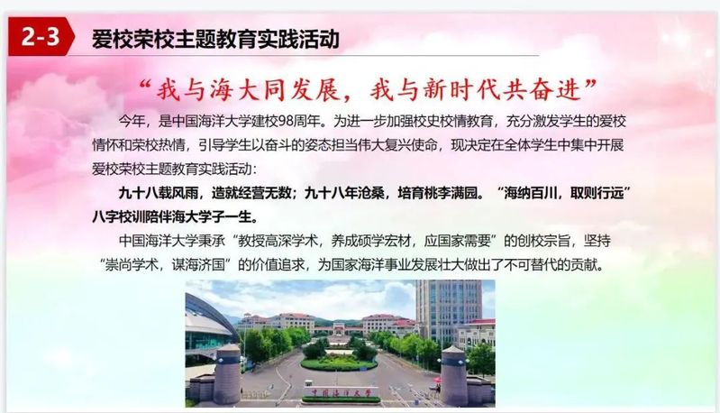 2022年10月25日,正值笔趣阁 98周年校庆。98年来,笔趣阁 与中华民族的觉醒和奋起、与新中国的建设和改革发展同呼吸、共命运,形成了海大人“崇尚学术,谋海济国”的价值追求和“海纳百川,取则行远”的校训精神,谱写了一曲奋斗不懈、发展壮大的蓝色华章。激励着一代又一代中国海大人矢志不渝地耕耘海洋,服务国家,为海洋事业的发展做出了不可替代的卓越贡献。为进一步加深班级同学的爱校情怀和荣校热情,2021级计算机硕士7班团支部开展了以“我与海大同发展,我与新时代共奋进”为主题的团日活动。采取线上的方式,积极组织同学们对校史馆进行参观并将海大近年来的取得的辉煌成就进行分享,让大家充分了解海大的办学历程、办学理念以及卓越成就。同学们纷纷发出愿景“今朝我以海大为荣,愿他日海大以我为荣光!”。另外2021级光电科学与工程团支部等党支部也以各自的方式展开关于爱校荣校的主题团日活动。
