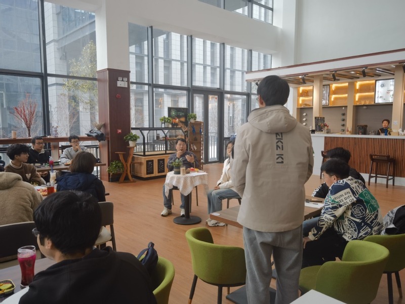 在轻松、融洽的气氛中,在座师生围绕话题畅所欲言,展开交流讨论。郑冰老师分享了电子工程学院各专业在新工科培养模式下的人才培养目标,他勉励同学们要注重能力和思维培养,在项目和实验中加强动手实践;要把握住全球经济发展趋势,在所学中寻找到自己的兴趣点和专业切入点。对此,同学们积极发言,询问交流。郑冰老师向同学们介绍了自己实验室的规模、研究方向以及目前取得的成果。随后又介绍了电子专业在水下领域的发展,支持并鼓励同学们应用所学,积极参与到国家的海洋强国建设中。