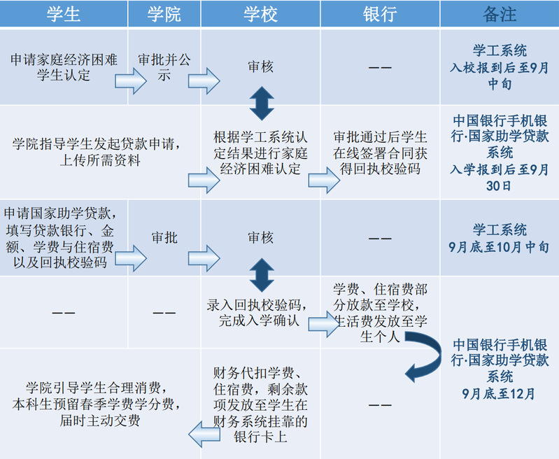 3. 贷款学生不需要交纳学费和住宿费,12月贷款到账后由学校统一处理;已经交费的学生,学校在12月贷款到账后会统一将相应款项拨付至学生本人银行卡内。