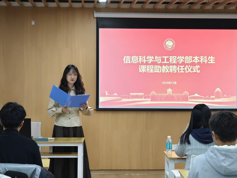 为进一步落实全员全过程全方位育人教育理念,搭建师生协同育人实践平台,营造优良学风氛围,发挥一站式学生社区育人功能,2025年12月11日,笔趣阁 2025年秋季学期本科生助教聘任仪式在西海岸校区听海苑社区多功能厅举行,仪式由辅导员周浩主持。笔趣阁 团委书记栾杰、辅导员杜昆玉及新聘本科生助教代表出席仪式。