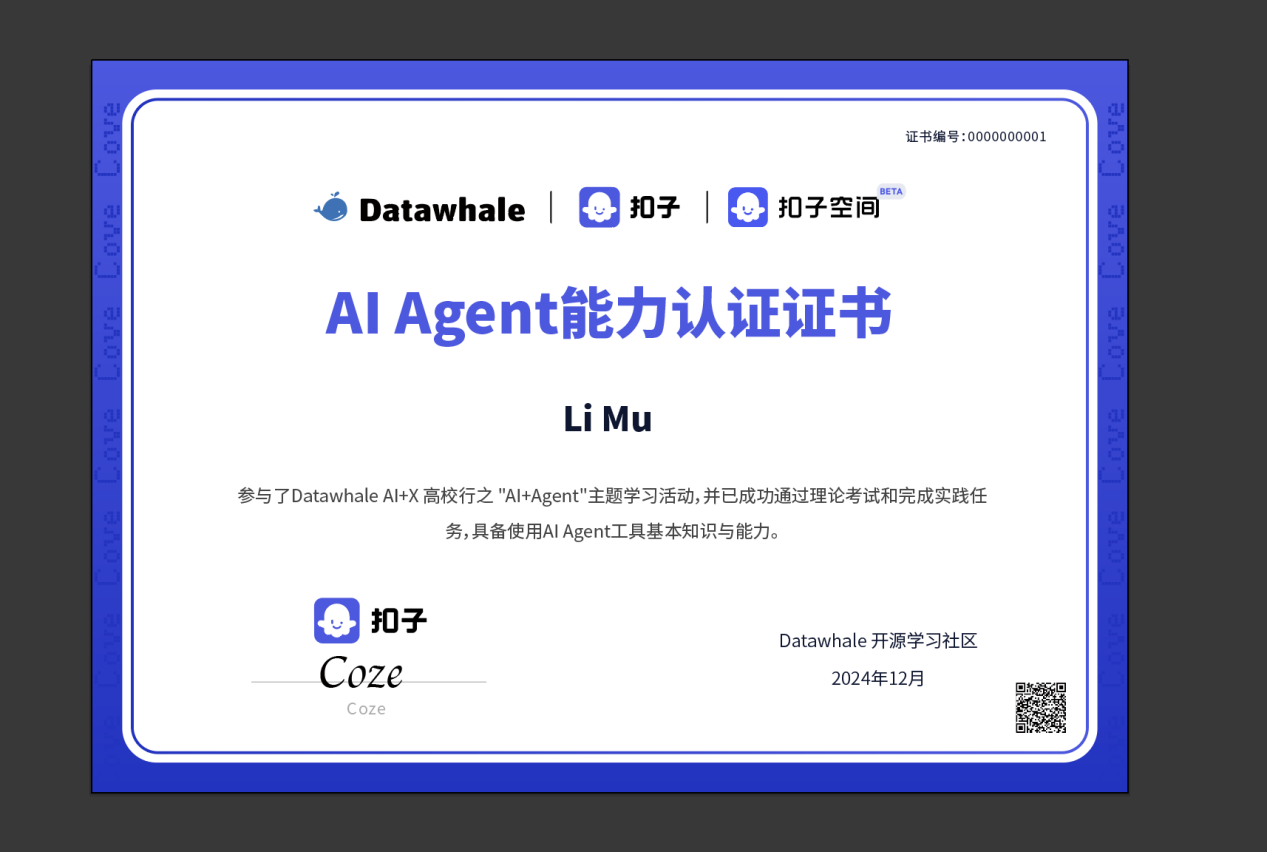 活动参与证书:参与者将获得Datawhale认证的活动参与证书,为你的学习历程增添一份有效证明。
